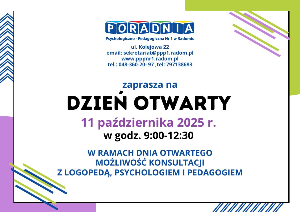 Zapraszamy na Dzień Otwarty w Poradni Psychologiczno-Pedagogicznej nr 1 (ul. Kolejowa 22).