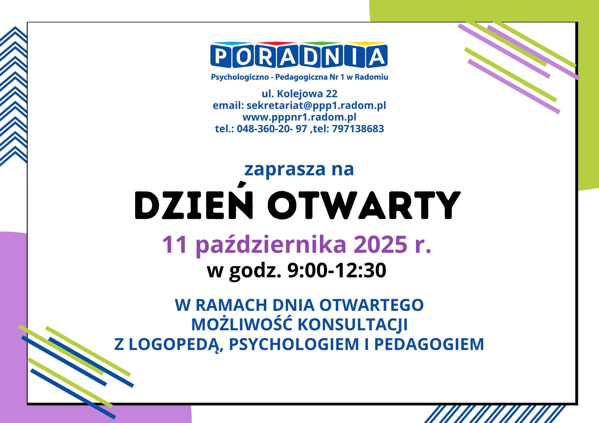 Zapraszamy na Dzień Otwarty w Poradni Psychologiczno-Pedagogicznej nr 1 (ul. Kolejowa 22).